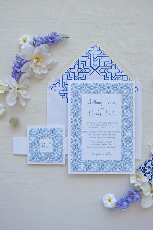 If you love Tiles, blue and whites, we hope this invitation could make part of your wedding.