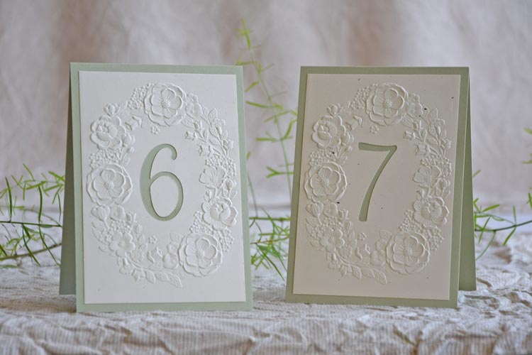 The Camélia Garden Table Number brings floral texture and gentle structure to your reception tables.