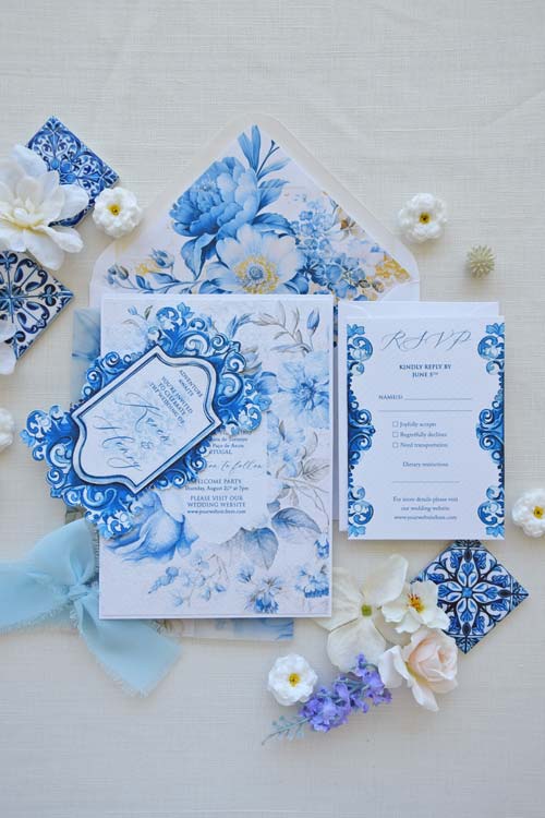 Allow us to be part of your wedding journey and let our Tile-Themed Invitation, inspired by the murals of historic Portuguese buildings, set the stage for a day that will be remembered for years to come. With our commitment to quality, personalization, and unwavering support, you can focus on what truly matters: enjoying every moment of your wedding planning and creating memories that will last a lifetime.