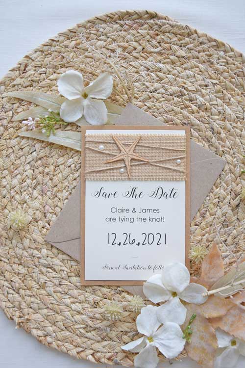 If you’re having a beach-themed wedding and you’re looking to save the dates that suit the theme, then you’re going to love our personalized save the date cards.