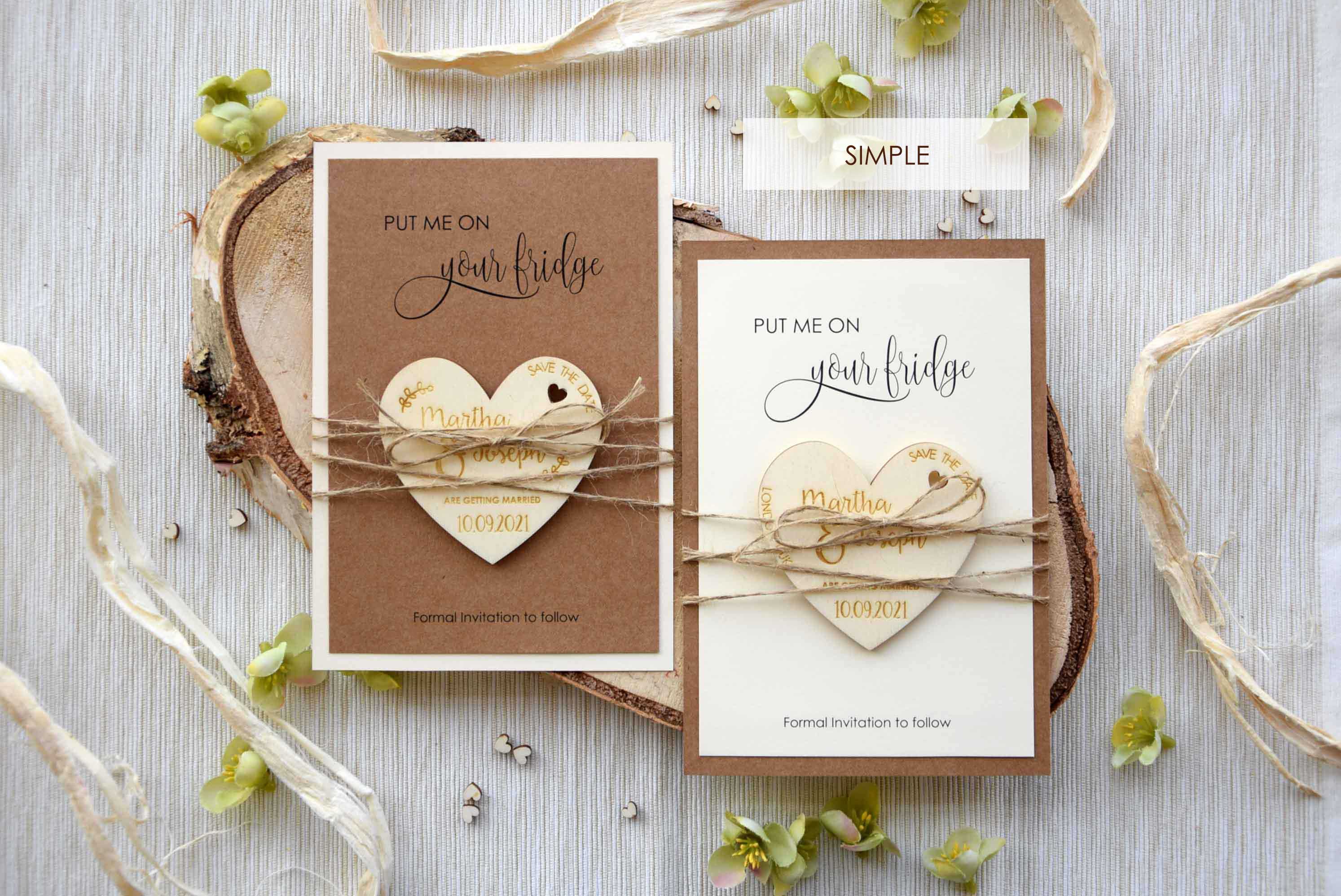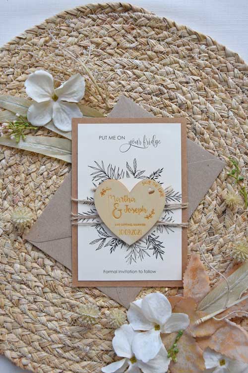 They will love to see these Magnets Save the Dates. They are natural, eco-friendly, rustic, and personalized pieces of wood on their fridge.
