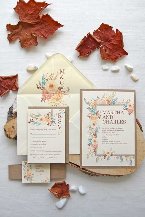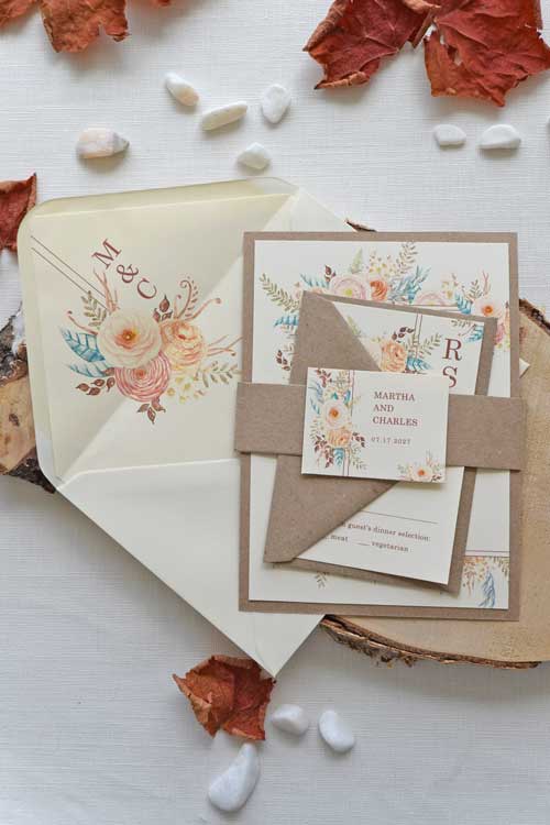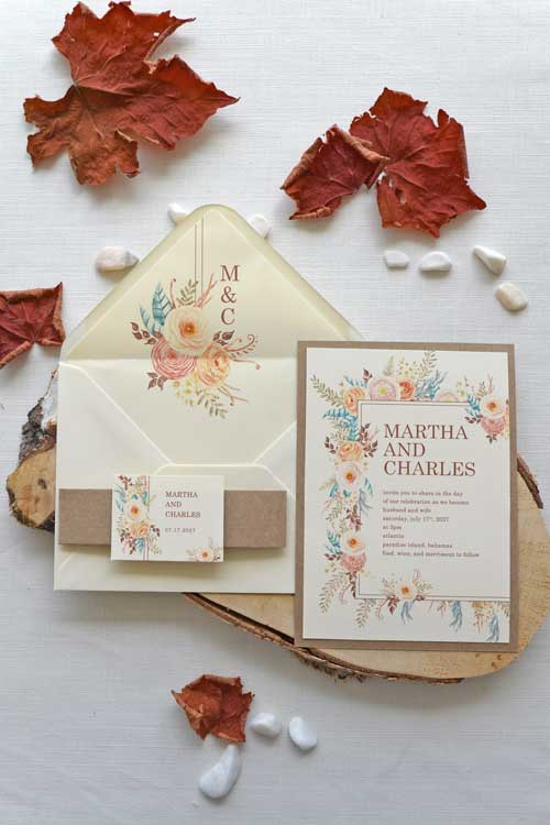These watercolor wedding invitations will set the perfect tone for your autumn or fall wedding. There is nothing more romantic, unique, and perfect to infuse your special day with the magic of the season.