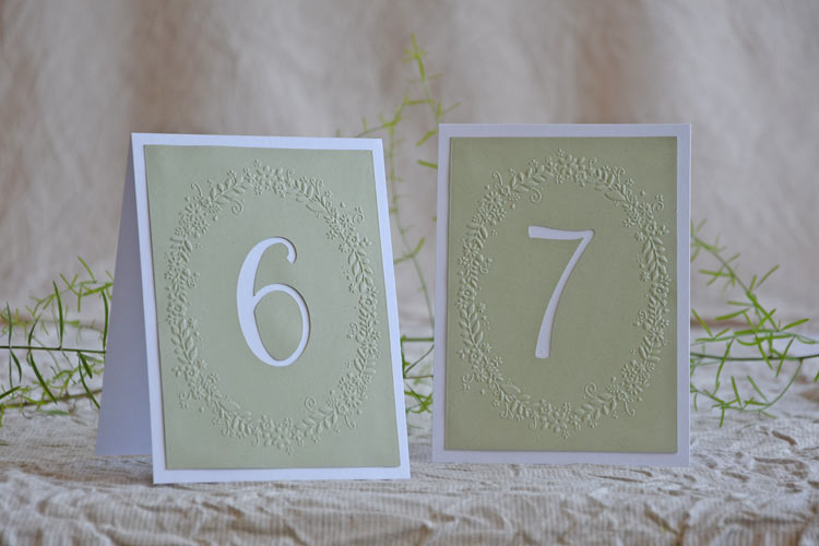 Designed with an embossed floral wreath and a clear central numeral, this folded piece helps guide guests while adding a refined decorative touch to the overall setting.