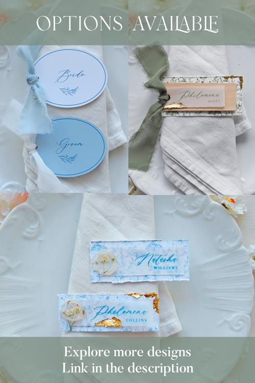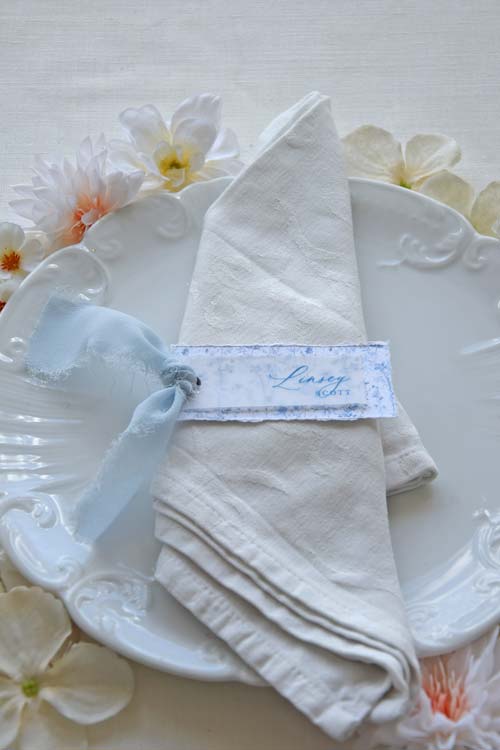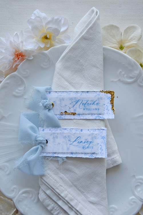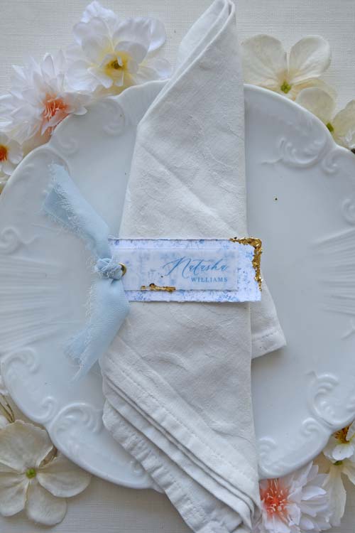 Romantic and serene, this layered place card is designed to leave a lasting impression.