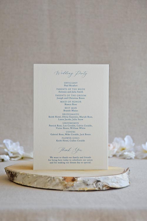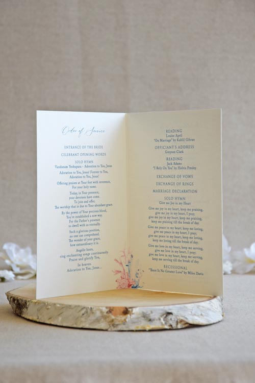 Every detail of this idyllic scene comes together to create a day that is as serene as it is spectacular. Our Order of Events cards are designed to ensure that your beachside ceremony and reception flow as smoothly as the tides, allowing you and your guests to fully embrace the beauty of the moment.