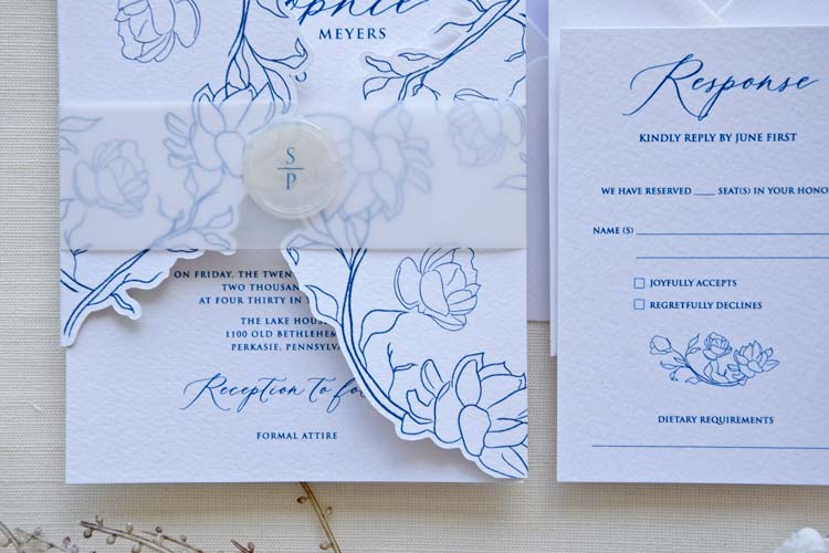 • Vellum Belly Band wrapped around the suite and sealed with a custom wax seal featuring your initials – a stunning detail that ties everything together